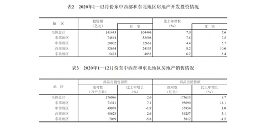 數(shù)據(jù)顯示,2020年中國東部、中部、西部及東北部地區(qū)銷售面積同比分別為7.1%、-1.9%、2.6%及-5.8%。銷售額同比增長分別為14.1%、1%、5.1%及-1.5%。其中,2020年東部地區(qū)商品房量、價(jià)增速分別高于去年9個(gè)和8個(gè)百分點(diǎn)。