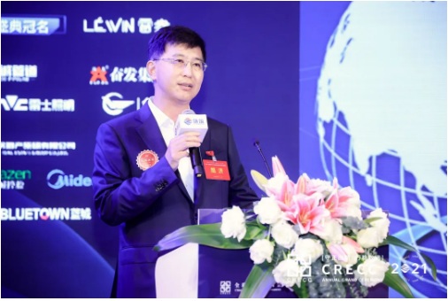2021中國(guó)房地產(chǎn)產(chǎn)業(yè)鏈年度盛典冠名單位:全聯(lián)房地產(chǎn)商會(huì)鏈筑分會(huì)副會(huì)長(zhǎng)單位、Léwin雷盎藝術(shù)智能中國(guó)區(qū)銷(xiāo)售總監(jiān)蒙靜強(qiáng)先生為晚宴致辭。