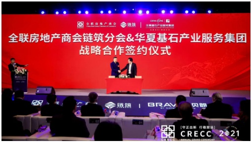 全聯(lián)房地產(chǎn)商會(huì)黨支部書(shū)記、秘書(shū)長(zhǎng)、鏈筑分會(huì)會(huì)長(zhǎng)趙正挺先生;華夏基石產(chǎn)業(yè)服務(wù)集團(tuán)CEO張文鋒先生一同上臺(tái)為全聯(lián)房地產(chǎn)商會(huì)鏈筑分會(huì)-華夏基石產(chǎn)業(yè)服務(wù)集團(tuán)—戰(zhàn)略合作簽約。