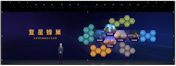發(fā)布會上,復(fù)星蜂巢合伙人、高地城市服務(wù)產(chǎn)業(yè)集團(tuán)董事長冉飛,首先介紹了高地的創(chuàng)始股東——復(fù)星,并分享了復(fù)星的兩個核心關(guān)鍵詞,一是“FC2M”,一是”蜂巢城市“