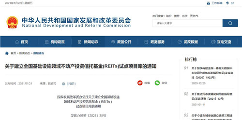 房訊網(wǎng)訊 為推動基礎(chǔ)設(shè)施領(lǐng)域不動產(chǎn)投資信托基金試點(diǎn)工作順利開展,調(diào)動盤活存量資產(chǎn)、形成投資良性循環(huán)積極性,保障基礎(chǔ)資產(chǎn)質(zhì)量,切實(shí)防范市場風(fēng)險,結(jié)合近期基礎(chǔ)設(shè)施REITs試點(diǎn)工作情況,國家發(fā)展改革委辦公廳印發(fā)《關(guān)于建立全國基礎(chǔ)設(shè)施領(lǐng)域不動產(chǎn)投資信托基金(REITs)試點(diǎn)項(xiàng)目庫的通知》(發(fā)改辦投資﹝2021﹞35號)。