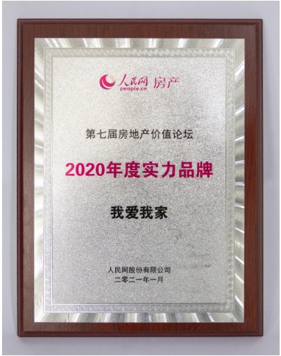 1月19日,由人民網(wǎng)主辦、中國房地產(chǎn)業(yè)協(xié)會協(xié)辦的第七屆房地產(chǎn)價值論壇以“線上+線下”的形式順利舉行。論壇以“謀定新思路,共筑新格局”為主題,聚焦房地產(chǎn)適應(yīng)新常態(tài)、尋求新思路、共筑新格局等重要議題。我愛我家控股集團獲評“2020年度實力品牌”。