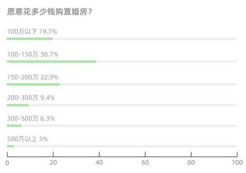 《報告》稱,研究發(fā)現(xiàn),54.1%的受訪者拒絕租房結(jié)婚,其中95后的接受度最低。近8成人購置婚房的預(yù)算在200萬以下,且超半數(shù)受訪者認(rèn)為房產(chǎn)證要寫上夫妻雙方的姓名。