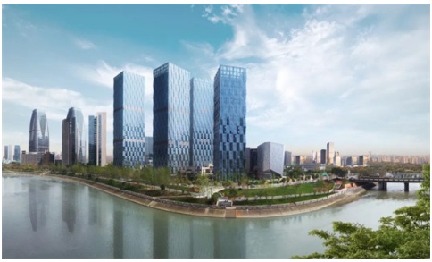 一方面,項(xiàng)目整體以現(xiàn)代立體美學(xué)風(fēng)格設(shè)計(jì),高層建筑采用全玻璃幕墻包裹,配以如波浪起伏的線條勾勒,與錦江形成完美呼應(yīng),頗有動(dòng)態(tài)美感。