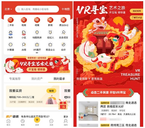 即日起至2月28日活動期間,用戶登錄我愛我家APP,除了能夠體驗VR帶看,AI語音講解,一對一線上帶看等,更有隨機紅包、驚喜藝術(shù)品等多重年貨等你來拿,給你的生活添點年味兒!