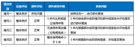 同種設(shè)備因使用場景不同,重要性和需求各異,據(jù)此制定了不同的評估內(nèi)容和使用年限要求。