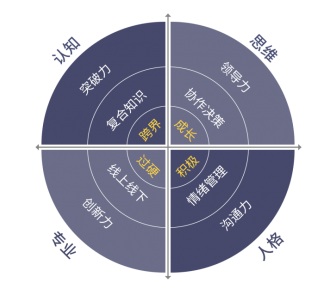 第一,成長(zhǎng)型的思維,在面對(duì)任何事情上都有決策力、協(xié)作能力和獨(dú)當(dāng)一面的領(lǐng)導(dǎo)力; 第二,跨界的認(rèn)知方式,具備復(fù)合知識(shí),有不斷的打破邊界的突破力; 三,積極人格,具備良好的情緒管理,高效能的溝通能力;四,過(guò)硬的專業(yè)能力,較強(qiáng)的線上線下能力,以及不斷利用新技術(shù)、新工具創(chuàng)造新需求的創(chuàng)造力。