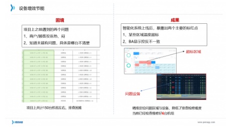 間接價(jià)值主要是服務(wù)品質(zhì)的提升,而直接價(jià)值包括人力、財(cái)力兩方面的節(jié)約。從6個(gè)月的運(yùn)營數(shù)據(jù)來看,十萬量級成本節(jié)約可以輕松取得。人力方面,以14名技工編制的場館對標(biāo)(含冷站),目前冷站運(yùn)行至少釋放2個(gè)人力,能耗管理釋放0.5個(gè)人力,環(huán)境管理及排障釋放1個(gè)人力,在提升管理效率、實(shí)現(xiàn)真巡檢、真維保的同時(shí),大約釋放了3-4人的人力,去年忙不過來業(yè)務(wù),現(xiàn)在輕松就可以完成。