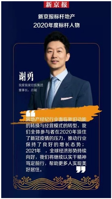 新年伊始,新京報標(biāo)桿地產(chǎn)挑選出在此特殊環(huán)境下為行業(yè)做出卓越貢獻(xiàn)的行業(yè)領(lǐng)袖,我愛我家集團董事長謝勇與京投集團、世茂集團、碧桂園等企業(yè)領(lǐng)導(dǎo)人共同獲評“2020年度標(biāo)桿人物”。