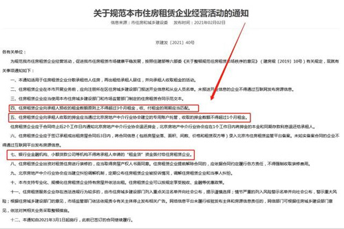 因此,此次北京《通知》中明確,銀行業(yè)金融機構(gòu)、小額貸款公司等機構(gòu)不得將承租人申請的“租金貸”資金撥付給住房租賃企業(yè)。