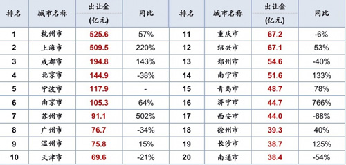1月上海實現(xiàn)單宗地塊成交額176億元,成為全國總價最高地塊。另據(jù)統(tǒng)計,上海1月全月共成交41宗住宅用地,成交規(guī)劃建筑面積348萬平方米,在351城中排名第一,同比增長173.1%,成交樓面價同比增長60.2%。