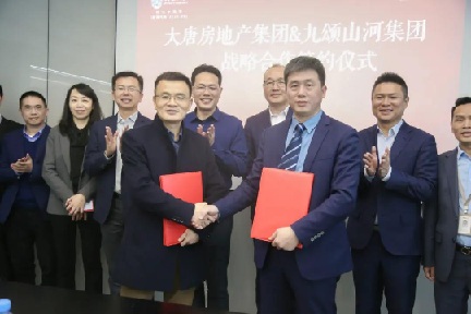 2021年3月5日,大唐地產(chǎn)集團(tuán)與九頌山河置業(yè)集團(tuán)在南昌九頌總部舉行戰(zhàn)略簽約儀式。九頌山河董事長胡魚海、總裁葉良榮、副總裁陳開杰、梁德威等與大唐地產(chǎn)集團(tuán)執(zhí)行董事兼總裁郝勝春、副總裁林瑞焰、海西公司總經(jīng)理吳懿、集團(tuán)投資中心總經(jīng)理盧曄等一行出席簽約儀式。