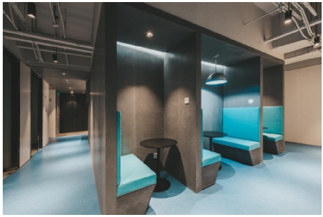 空間設(shè)施一應(yīng)俱全,公共辦公區(qū)、洽談室、會(huì)議室、就餐區(qū)入駐會(huì)員全部可以使用。與其他空間不同,入駐金光外灘的會(huì)員可以免費(fèi)使用四間會(huì)議室,除了辦伴標(biāo)配的公共辦公、休閑區(qū),金光外灘空間還配置了母嬰室,為入駐會(huì)員提供更加人性化的員工關(guān)懷。