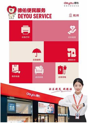 近期,杭州德佑在階段性跟蹤消費(fèi)者需求后,將"9大便民服務(wù)"內(nèi)容優(yōu)化更新為"7大便民服務(wù)".除全國(guó)統(tǒng)一的應(yīng)急打印、應(yīng)急避雨、便民飲水、寄存快遞、店內(nèi)休息、應(yīng)急充電外,還添加了城市特色:舊衣捐贈(zèng),服務(wù)類(lèi)型全面且覆蓋率高,進(jìn)一步滿足社區(qū)居民的真實(shí)生活剛需。