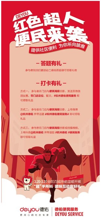 杭州德佑希望借助輕松簡(jiǎn)單的活動(dòng)形式,吸引更多居民走進(jìn)德佑門(mén)店、親身體驗(yàn)便民服務(wù),提升"七大便民服務(wù)"的知名度、參與度,輻射更廣泛的受眾人群,讓德佑真正成為"社區(qū)中的紅色樞紐".