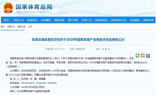 房訊網(wǎng)訊 近日,國家體育總局體育經(jīng)濟(jì)司對(duì)2020年國家體育產(chǎn)業(yè)基地評(píng)選結(jié)果進(jìn)行公示。據(jù)悉,本次公示的國家體育產(chǎn)業(yè)基地共包含三種類型,分別是13個(gè)國家體育產(chǎn)業(yè)示范基地、33個(gè)國家體育產(chǎn)業(yè)示范單位與33個(gè)國家體育產(chǎn)業(yè)示范項(xiàng)目。