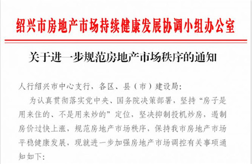 房訊網(wǎng)訊 近日,紹興市房地產(chǎn)市場持續(xù)健康發(fā)展協(xié)調(diào)小組辦公室發(fā)布《關(guān)于進一步規(guī)范房地產(chǎn)市場秩序的通知》,包括嚴格防范經(jīng)營貸、消費貸違規(guī)流入房地產(chǎn)市場;嚴厲打擊房地產(chǎn)企業(yè)違法違規(guī)行為;嚴厲打擊房地產(chǎn)中介機構(gòu)違法違規(guī)行為以及嚴格規(guī)范房地產(chǎn)市場信息發(fā)布。