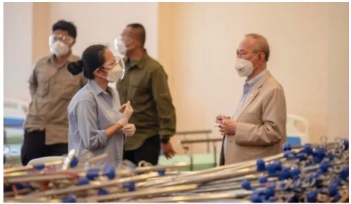 2021年4月13日,經(jīng)過80小時不分晝夜的趕工,柬埔寨“方艙醫(yī)院”布置完畢。由洪瑪內(nèi)將軍率領洪森志愿醫(yī)生協(xié)會工作團隊,將鉆石島會展中心布置成新冠輕癥患者收治點,目前已可投入使用。洪瑪內(nèi)將軍表示,在廣泛執(zhí)行輕癥患者“居家治療”措施之前,柬政府將竭盡所能安排輕癥患者在收治點接受治療。