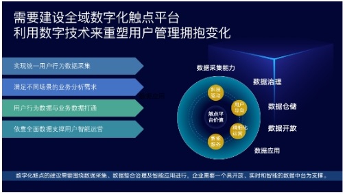 企業(yè)實(shí)現(xiàn)全域觸點(diǎn)數(shù)字化,是要建設(shè)企業(yè)與客戶的數(shù)據(jù)鏈接、獲取能力,通過數(shù)據(jù)感知市場、客戶需求的變化,高效的決策,滿足用戶需求。但是很多地產(chǎn)企業(yè)對(duì)客戶觸點(diǎn)數(shù)據(jù)沒有實(shí)現(xiàn)全面的采集,沿用傳統(tǒng)的方式去獲取數(shù)據(jù),在用戶需求的變化時(shí),因缺乏數(shù)據(jù)洞察導(dǎo)致需求滿足響應(yīng)速度慢,失去競爭優(yōu)勢。