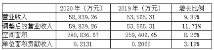 另一方面還來自于單位面積產(chǎn)值的提升。數(shù)據(jù)顯示,2020年創(chuàng)富港調(diào)整后收入增速11.71%,高出面積增速3.5個(gè)百分點(diǎn),調(diào)整后單位面積年收入0.2131萬元,高于2019年的0.2065萬元。