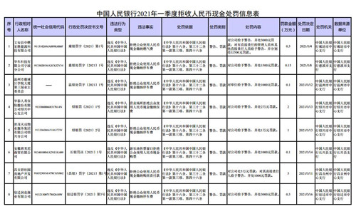 房訊網(wǎng)訊 5月10日,央行發(fā)布2021年一季度拒收人民幣現(xiàn)金處罰情況,8家拒收現(xiàn)金的單位及相關(guān)責(zé)任人被經(jīng)濟(jì)處罰,包括公共服務(wù)機(jī)構(gòu)、停車場(chǎng)、游樂(lè)場(chǎng)、保險(xiǎn)公司及房地產(chǎn)公司等。其中,昌吉碧桂園房地產(chǎn)開(kāi)發(fā)有限公司因拒絕公眾使用人民幣現(xiàn)金繳納購(gòu)房首付款,被處以5萬(wàn)元罰款,對(duì)其直接責(zé)任人予以警告,并處1000元罰款。