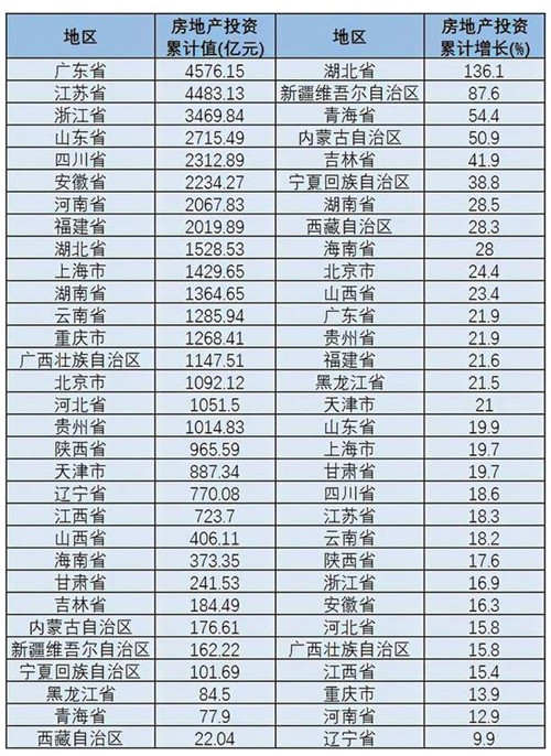 其余14個(gè)。▍^(qū)、市)房地產(chǎn)投資額則均未達(dá)到1000億元,包括陜西、天津、海南、甘肅、東北三省等。尤其是黑龍江、青海、西藏,前4月房地產(chǎn)投資額甚至不足百億元,分別僅84.5億元、77.9億元、22.04億元,遠(yuǎn)遜于其他省市。