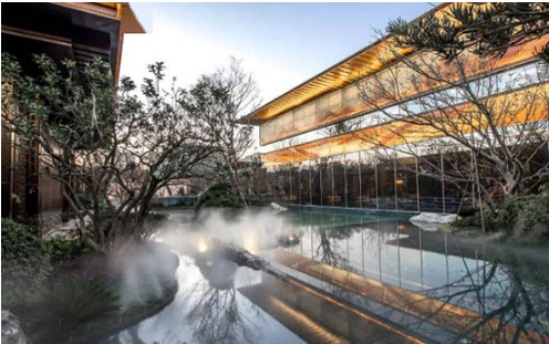 上!ぱ氕t將海派摩登文化融入中式建筑的精髓,以現(xiàn)代設(shè)計(jì)手法展現(xiàn)中國(guó)自然山水河和盛世生活的意向。