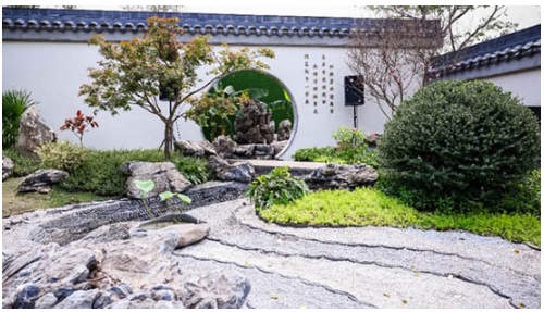 融古今,啟新制,建發(fā)和鳴將佛山城市肌理、嶺南文脈厚土,融入人居生活,啟幕新中式生活。一景一物,片瓦寸石,皆有典可溯!号P橋正道』取自佛山南海煙橋村中軸,致意城市中軸嶺南大道。『石齋寄情』演繹梁園奇石『十二石齋』,置身佛山新城繁華之中,亦享山水之美!阂性崎g』以云墻為紙,植栽為筆,漏窗框景,似動(dòng)猶靜。