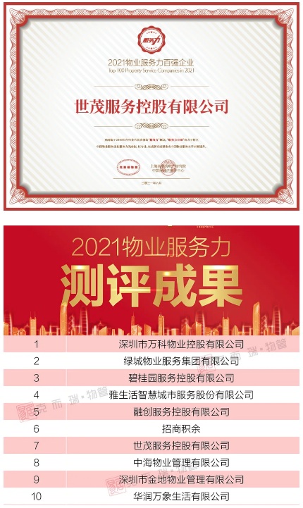(世茂服務榮獲“2021物業(yè)服務力TOP7企業(yè)”)