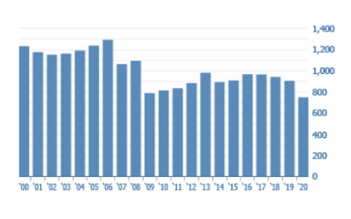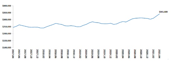 報告顯示,截止到2021年4月底,美國房屋庫存量約為116萬套,同比降低20.5%,按當(dāng)前的銷售速度,庫存去化時間約為2.4個月,接近歷史最低庫存去化時間。由于房屋供應(yīng)持續(xù)短缺,2021年4月全美房屋銷售量較3月有所降低,但住房需求仍然強勁,未來整體市場房價有望持續(xù)攀高。