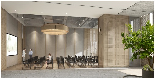 空間內(nèi)將打造可容納120人的大型活動空間、董事會議室等,滿足企業(yè)舉行新品發(fā)布、內(nèi)部培訓、行業(yè)分享會、高端商務洽談、社群活動等多樣化的活動場地需求,補足區(qū)域內(nèi)大型商務會議及社交空間的配套功能。