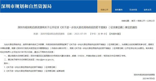 房訊網(wǎng)訊 為加大居住用地供應,深圳市規(guī)劃和自然資源局近日起草了《關于進一步加大居住用地供應的若干措施》(征求意見稿),進一步深化空間供給側(cè)結(jié)構(gòu)性改革,建立住房和土地聯(lián)動機制,優(yōu)化調(diào)整用地結(jié)構(gòu)布局,加大居住用地供給,著力解決好大城市住房突出問題,持續(xù)改善人居環(huán)境品質(zhì),加快打造民生幸福標桿城市。