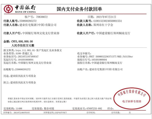 房訊網(wǎng)訊 7月21日,建業(yè)集團向鄭州市紅十字會捐贈現(xiàn)金500萬元設(shè)立“建業(yè)防汛抗災(zāi)專項基金”,并同時采購救援物資支持受災(zāi)地區(qū)與群眾。
