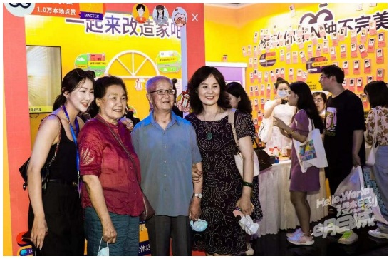 還有一個(gè)拒絕被定義的群體就是:花白頭發(fā)的年長(zhǎng)者。他們經(jīng)歷過(guò)經(jīng)濟(jì)和社會(huì)的黃金年代,甚至不止體驗(yàn)過(guò)一個(gè)周期。他們過(guò)了雙倍人生,但依然不希望被年齡和時(shí)間定義。在「沒(méi)想到明日城」現(xiàn)場(chǎng),他們的參與方式可不只是拍照打卡,小程序、社群樣樣很溜——不斷向前的人會(huì)越過(guò)時(shí)間。