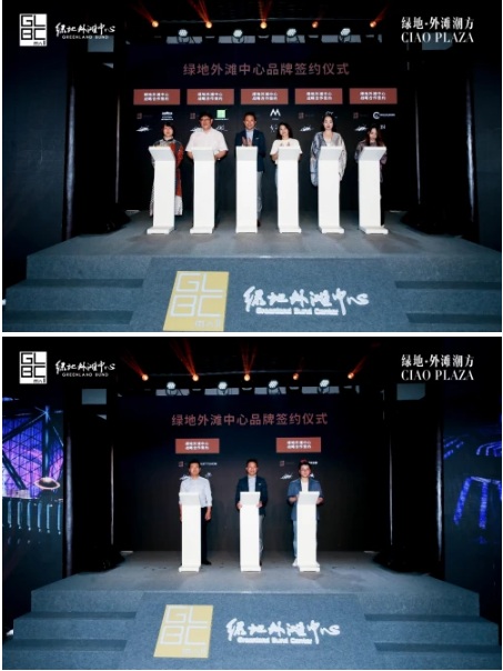 發(fā)布會(huì)最后,首發(fā)品牌代表與綠地·外灘潮方進(jìn)行了現(xiàn)場(chǎng)簽約儀式,更有部分品牌首次展示其為綠地·外灘潮方店打造的定制化設(shè)計(jì)效果圖,將整場(chǎng)會(huì)場(chǎng)氛圍推向高潮。