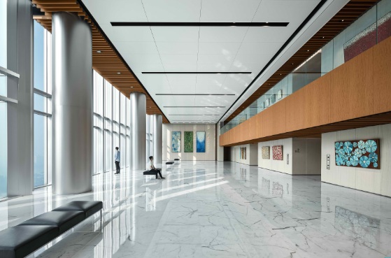 據(jù)介紹,凱華國際中心采用國內(nèi)寫字樓少見、可媲美星級酒店的無風(fēng)雨廣場設(shè)計(jì),這也是目前珠江新城寫字樓唯一一個(gè)無風(fēng)雨入口。此外,大樓內(nèi)部細(xì)節(jié)精心推敲,33層空中觀景大堂更是展覽、活動(dòng)和社交的絕佳場所,適合租戶與其訪客在定制藝術(shù)品和壯麗江景的環(huán)境中建立互動(dòng)。