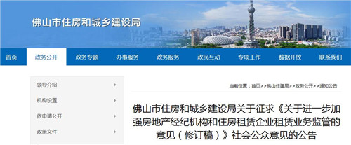 房訊網(wǎng)訊 8月17日,佛山市住房和城鄉(xiāng)建設(shè)局發(fā)布《關(guān)于進(jìn)一步加強(qiáng)房地產(chǎn)經(jīng)紀(jì)機(jī)構(gòu)和住房租賃企業(yè)租賃業(yè)務(wù)監(jiān)管的意見(jiàn)(修訂稿)》,向社會(huì)公眾征求意見(jiàn)。