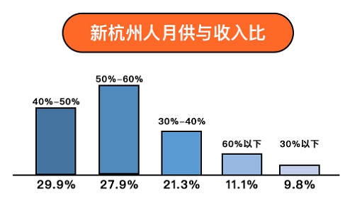 其實女性購房早已不是新鮮事,在老杭州人當中,女性購房占比就達到42.6%,而新杭州人女性購房占比更多、更為積極,達到44.4%。同時,新杭州人更熱衷于買80-90㎡的剛需戶型,緊湊3居戶型為主,保證功能空間的同時控制總價,購房支付力集中在200-300萬,占比達到35.62%。主流月供還款范圍1-1.5萬元,結(jié)合收入水平,月供占收入40-60%的新杭州人超過半數(shù)。