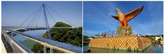 除了主地標巨鷹廣場和天空之橋,由99個島嶼組成的蘭卡威群島遍布美麗的丘陵、山谷、山脈、叢林、未受污染的原始海灘、瀑布、稻田以及古樸的村莊,亦是犀鳥、老鷹等許多野生動物棲息的家園,年游客量近400萬。