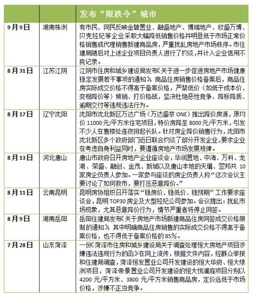 據(jù)澎湃新聞不完全統(tǒng)計,截至目前,包括株洲、江陰、菏澤、岳陽、昆明、沈陽、唐山等7城公布房價“限跌令”。