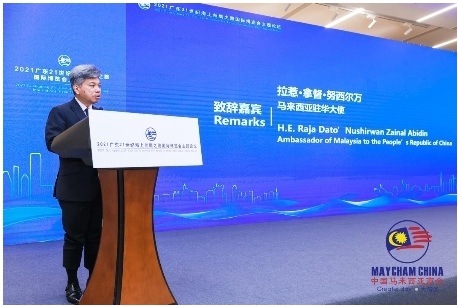本場(chǎng)峰會(huì)圍繞中馬經(jīng)貿(mào)交流與合作為主題于下午3點(diǎn)30開幕,馬來西亞駐華大使拉惹·拿督·努西爾萬致以開幕辭,中國馬來西亞商會(huì)大灣區(qū)會(huì)長、廣東省駐東南亞經(jīng)貿(mào)辦事處主任、廣東省貿(mào)促會(huì)副會(huì)長分別致以歡迎辭。