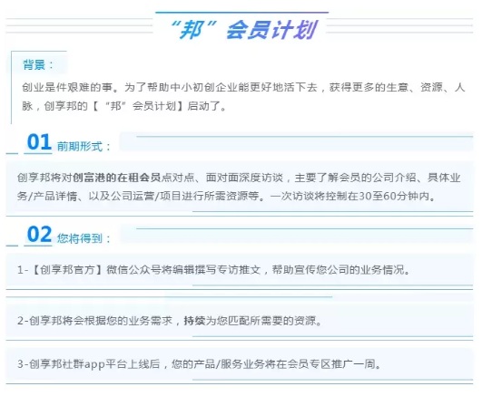 其實(shí),在創(chuàng)享邦線上平臺(tái)上線之前,創(chuàng)富港就有推出“邦”會(huì)員計(jì)劃,為中小創(chuàng)業(yè)企業(yè)提供幫助,加入的會(huì)員可以:激活其他會(huì)員的商脈圈,快速擴(kuò)展自己的生意;激活自身的商脈圈,銷售其他會(huì)員的優(yōu)質(zhì)產(chǎn)品,獲得傭金回報(bào)。