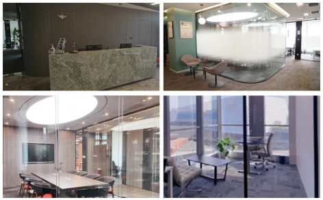 本項(xiàng)目為虹橋商務(wù)區(qū)全新項(xiàng)目,中心裝修均采用國外進(jìn)口高端建材 : 大廳采用了徐家匯ITC 5A寫字樓標(biāo)準(zhǔn)云朵灰大理石地材;墻面選用日本原裝進(jìn)口三菱復(fù)合板、德國DWG水性涂料、德國Erfurt進(jìn)口木纖維墻紙;公區(qū)地面全部選Milliken美利肯高端地毯,營造高等級(jí)環(huán)保商務(wù)空間的質(zhì)感;在建筑內(nèi)部:每個(gè)房間均采用獨(dú)立的新風(fēng)系統(tǒng),確保辦公健康的空氣標(biāo)準(zhǔn),獨(dú)立空調(diào)確保舒適度;給水管道采用德國Viega 316L醫(yī)用級(jí)不銹鋼管道確保飲用水的最高等級(jí)標(biāo)準(zhǔn);公區(qū)家具選用Maste瑪祖銘立家具集團(tuán)的經(jīng)典的Prestige、Unit、Njord、eTea等現(xiàn)代化高等級(jí)家具,標(biāo)準(zhǔn)辦公室采用科爾卡諾零甲醛級(jí)辦公桌椅;衛(wèi)生間選用日本進(jìn)口INAX智能蓋板,提供了衛(wèi)生安心的使用體驗(yàn)。在管理系統(tǒng)上采用了虹橋商務(wù)區(qū)首家使用?低暤娜四樧R(shí)別系統(tǒng),高效、安全,可靠的打卡記錄等優(yōu)點(diǎn)。在歷經(jīng)一年的打磨過程中,目前可以提供兩個(gè)水吧區(qū)域、大小6間會(huì)議室、一個(gè)現(xiàn)代化的‘戶外’辦公空間,是現(xiàn)代集約辦公的典范。“