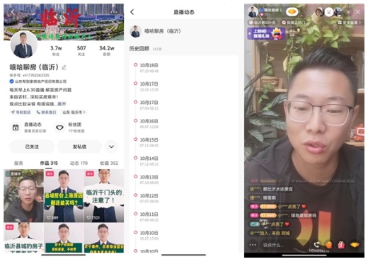 通過門店獲客越來越難,想干好房產行業(yè)必須尋找新渠道。期間,他關注到臨沂比較知名的主播@房產咨詢趙鳳艷,得知她在快手一場直播能獲客10到20組,每個月成交5到10套房子,嘻哈聊房意識到自己必須學習直播賣房。