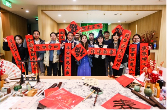 不僅如此,在下午茶交流環(huán)節(jié),還特地邀請(qǐng)專(zhuān)業(yè)書(shū)法老師現(xiàn)場(chǎng)書(shū)寫(xiě)對(duì)聯(lián)贈(zèng)送來(lái)賓,并讓來(lái)賓親自動(dòng)手寫(xiě)下新春祝福寄語(yǔ),整場(chǎng)答謝會(huì)沉浸在其樂(lè)融融的氛圍當(dāng)中。