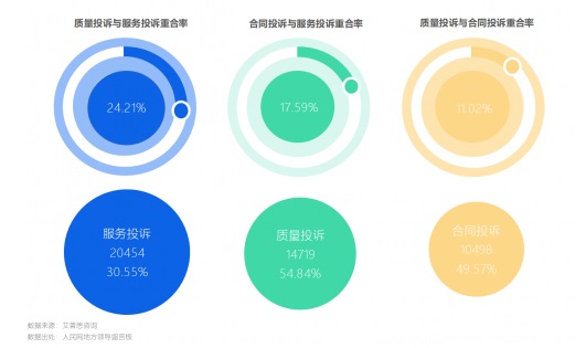 本季度質(zhì)量投訴與服務(wù)投訴重合率24.21%,較去年同期下降9.55%;合同投訴與服務(wù)投訴重合率17.59%,較去年同期下降61.52%;質(zhì)量投訴與合同投訴重合率為11.02%,較去年同期下降29.37%。