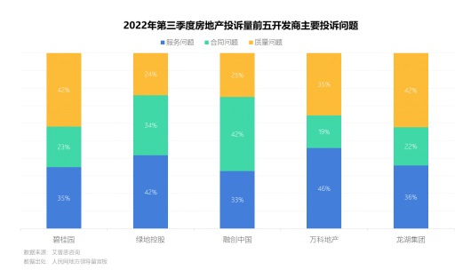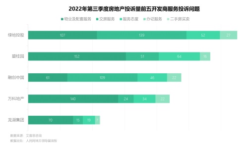 圖18:2022年第三季度房地產(chǎn)投訴量前五開發(fā)商服務(wù)投訴問題
