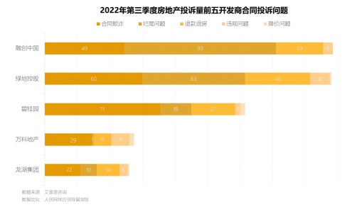 圖17:2022年第三季度房地產(chǎn)投訴量前五開發(fā)商合同投訴問題
