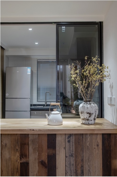 廚房設(shè)計(jì)延續(xù)原木質(zhì)調(diào)的家居搭配,加之簡(jiǎn)約卻不簡(jiǎn)單的擺設(shè),呈現(xiàn)出一種雅致淡泊的氣氛,給人一種舒適輕快的感覺(jué)。