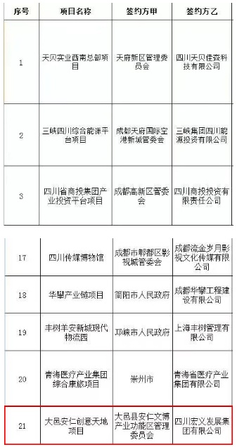 21個重大項目簽約